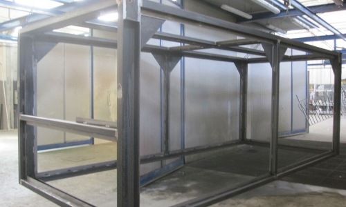 Abbiamo realizzato una struttura in ferro di grandi dimensioni (circa 5mt x 2,5mt x 2,5mt). La struttura d'acciaio è destinata ad essere collegata ad una attrezzatura industriale per garantirne la protezione. Il tempo di lavorazione richiesto per la costruzione è stato di 5 giorni.